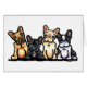 Aus Andies originaler Tinte und farbiger Bleistiftzeichnung von 4 Farben französischer Bulldogs: Fellfarbe, schwarz, creme und schwarz/weiß. Ideal für französische Liebhaber.