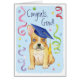 Begrüßen Sie Ihren Lieblingsschüler mit einem Geschenk mit einem niedlichen kleinen französischen Bulldoggen-Absolvent mit einem Mörtel inmitten einer Flasche Konfetti.