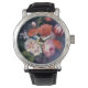 Uhr, Vintage Männeruhr mit schwarzem Lederarmband