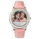 Kinderuhr aus Edelstahl mit rosa Lederarmband