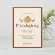 Freundschaftliche Minimal Pumpkin Verlasst Erntedank Einladung. Ein Aquarellkürbis und zarte Herbstblätter bilden den Rahmen "Friendsgiving" in einfacher Typografie. Ausgewogenes und warmes saisonales Design. AI-unterstützte Kunstwerke. Ich kann eine kleine Provision von Affiliate-Links erhalten.