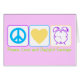 ' Frieden, die Eigenschaften der Liebe-und Tageslicht-Sparungen ein blaues Friedenssymbol, ein gelbes Herz und ein lila Wecker. Alle gedeckten heraus im Frühjahr Farben, dieser Entwurf feiert dieses kleine Extrastückchen des Tageslichts.