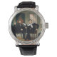 Uhr, Vintage Männeruhr mit schwarzem Lederarmband