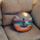 Yoga Fitness Studio / Meditation Instructor / Personal Trainer / Life Coach / Heiler / Reiki Master / Massage Therapie Rundkissen. Friedliche meditierende Silhouette bei Nacht unter dem Fantasy Moonlight Sky am Calm Ocean Beach.