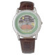 Uhr, Vintage Männeruhr mit schwarzem Lederarmband