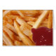 Foto von Pommes frites und Ketschup, gedruckt an Kartenkanten.