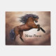 Friesisches braunes Pferd, das oben mit Fußmatte