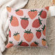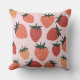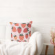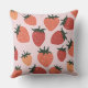 Dieses stilvolle Kissen mit einem Farm-Fresh Strawberry Obstthema auf einem weichen rosa Hintergrund. Jummy, plump, illustrierte Erdbeeren sind in Rot- und Rosatönen über das Kissen gefliest.