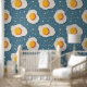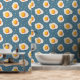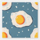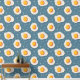 Ein Muster aus frischen, gebratenen Eiern auf himmelblauem Hintergrund. Frühstück:)