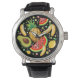 Uhr, Vintage Männeruhr mit schwarzem Lederarmband