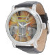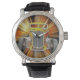 Uhr, Vintage Männeruhr mit schwarzem Lederarmband