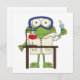 A green frog with safety goggles and a white lab coat does some experimenting in the lab on Frog in the Lab T-shirts, mugs, cards, stickers, tote Bags, Keychains, Magnets, Ornaments, and other science theme apparel and ohrs.