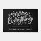 Personalisierte Weihnachtsmatte mit handgeschriebener Typografie und Ihrem personalisierten Text. Design liest Merry Alles, mit Sternen dekoriert und hat eine Farbpalette von schwarz und grau.