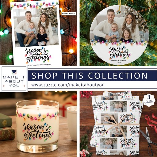 Frohe Festtage 2 Fotos Weihnachtsleuchten Ornament. Mit diesem Foto-Ornament mit zwei Bildern, einem festlichen GREETINGS der SAISON in zeitgenössischer Kalligraphie-Schriftzeichen mit farbenfrohen, leuchtenden Weihnachtslichtern und personalisiert mit Namen und Jahr oder Ihren eigenen Text. HILFE: Für Hilfe bei der Designänderung wenden Sie sich bitte an den Designer, BEVOR er die Bestellung über den unten stehenden Zazzle Chat MESSAGE Reiter erledigt, oder senden Sie eine E-Mail an makeitaboutyoustore@gmail.com.