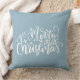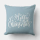 Niedliches hellblaues Kissen im Landhausstil. "Frohe Weihnachten" Zitat Text geschrieben als Kalligrafie WordArt. Weitere passende Artikel finden Sie in meiner Sammlung "Weihnachten in rot, blau und weiß"