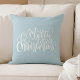 Frohe kleine Weihnachten in hellblau Throw Kissen