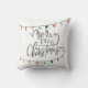 Moderne, einfache und fröhliche Merry Little Weihnachtsschrift mit leuchtenden und farbenfrohen Saiten von Weihnachtslichtern. Dieses Kissen wird jedem Innendesign des Urlaubshotels Wärme verleihen.
