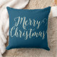 Frohe Weihnachten Blau Beige Weihnachtsbaum Kissen.