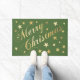 Frohe Weihnachten Elegante Script Gold Stars Green Fußmatte