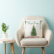 Frohe Weihnachten Gold Moderne Custom Family Throw Kissen. Das saisonale Kissendesign besticht durch ein modernes antikes Goldskript "Frohe Weihnachten" mit rotem, individuellem Text, der mit eigenem Namen personalisiert werden kann. Grüne Zweige von heiligen Blätter heben das Design mit weißer Hintergrundfarbe hervor.