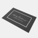 Elegant Frohe Weihnachten Doormat mit einem weißen Skript auf einem grauen Hintergrund. Personalisieren Sie Ihre Daten mit Ihrem Familiennamen oder Text.
