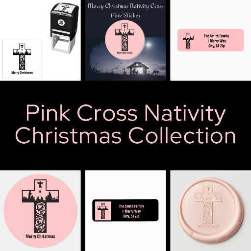 Merry Christmas Pink Cross Nativity ChristmasDesignt von Suzanne Hein