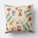 Fröhlicher Weihnachtstext mädchenhaft rosa Hintergrund mit prächtigen und farbenfrohen Ornamenten werfen Kissen. Mädchenweihe Wohngestaltung für Kinder.