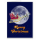 Eine fröhliche Weihnachtskarte, auf der der Weihnachtsmann in seinem Schlitten reitet, der von einem Rentier gezogen wird. Sie fliegen am Vollmond am Himmel vorbei. Eine gute Karte zu sagen glückliche Ferien zu Freunden und Familie.