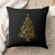 Frohe Weihnachten Tree Stars Schwarzer Hintergrund Gold Look Shiny Chic Cotton Pillow
