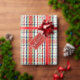 Dieses Design bietet ein fröhliches Weihnachts-Kalligrafie-Schriftzeichen mit einem karierten, einfachen, roten, silberfarbenen, trendigen Schriftart, einfaches minimalistisches Muster-Design, rustikales Rot Blau, Weihnachts-Packmaterial, maßgeschneiderte personalisierte Geschenkpackung, vereinfachend elegante klassische niedliche, niedliche Typografie-Stil Text, whimsical niedliche Spaßpapier