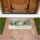 Frohe Weihnachten glückliche Rentiere im Waldbauernhaus. Ein komplexes und perfektes Weihnachtsdesign, personalisierte Türmatte. Das Design beginnt mit einem Foto von Einbruch auf dem Hintergrund, die Erholung des Designs ist Grafik. Ein Design, das unter dem Schneewetter im Wald so viel Gefühl Weihnachten gibt.