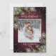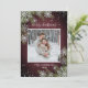 Basierend auf meiner bestverkauften Winter Wedding Invitation Suite, ist dieses gemütliche Foto im weinbordeauxfarbenen Design Weihnachtskarte mit Ihrem Lieblings-Hochzeitsfest-Foto ausgestattet und mit Silberschneeflocken und Aquarellkiefern sowie einer bordeauxroten und schwarzen Büffel-karierten Textur dekoriert. Personalisieren Sie mit Ihrem Foto, Namen und Jahr. Bitte kontaktieren Sie Designer für passende Produkte oder Designvariationen und sehen Sie sich die Holiday Suite hier an: https://www.zazzle.com/collections/rustic_burgundy_silver_winter_plaid_wood_christmas-119954909896873769 Copyright Anastasia Surridge for Elegant Invites, alle Rechte vorbehalten.
