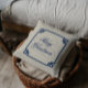 Eleganter, hellbeige, farbiger Leinenstoff (Leinenbild) Hintergrund mit marineblauer Schrift Typografie-Heiligabend und Art Deko Rahmen.