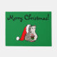 Ein niedlicher Cartoon-Igel zu Weihnachten in roter Weihnachtsmannmütze und die Worte "Frohe Weihnachten!"