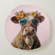 Fröhliche Kuh mit Sonnenbrille Rundes Kissen