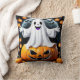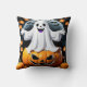 Fröhlicher Geist unter Kürbis zu Halloween Kissen