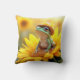Ein niedlicher Frosch mit einem kleinen Hut auf einer hellgelben Sonnenblume, umgeben von einem verschwommenen Hintergrund ähnlicher Blume