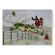Ein Spielzeugsoldat fällt weg von einem Frosch während Uhren eines Affen mit der Küste und einem Leuchtturm im Hintergrund in dieser 1940 " Vintagen Karte s.