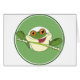 Dieser glückliche Frosch schaut mit einer Hintergrundkreisstelle groß.