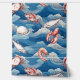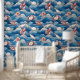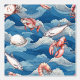 Früchte de mer Muster für Ihre Küchenwand; Garnelen, Hummer, Krabben und Fisch auf Meereswellen-Hintergrund.