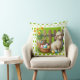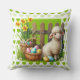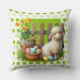 Ein Osterlamm mit Korb mit Eiern auf einem grünen Wurfkissen mit grünen Herzen für Ihre Osterdekoration