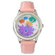 Kinderuhr aus Edelstahl mit rosa Lederarmband