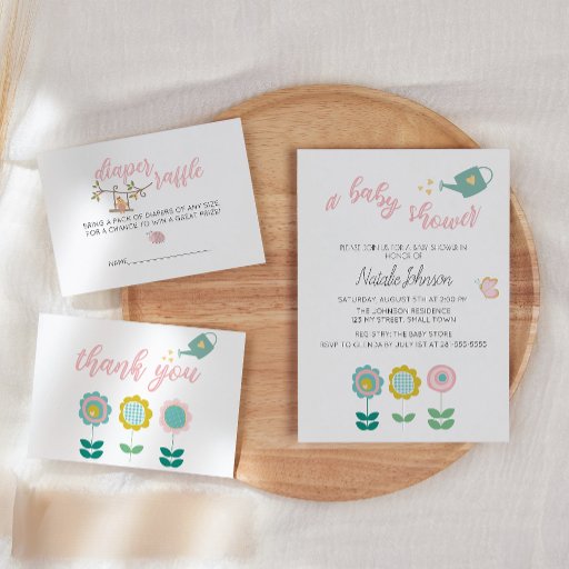 Die niedliche Babydusche wird von hübschen, handgezogenen Blume mit Frühlingshauben und Touchs geschmückt. Die Koordinierung der Rückseite ist inbegriffen. Personalisieren Sie Ihre Daten einfach und schnell, indem Sie einfach die Schaltfläche Anpassen drücken. In unserem Zazzle-Shop finden Sie passende Artikel, um Ihre Veranstaltungskollektion abzuschließen!