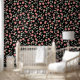 Ein wunderschönes skurriles, blumengeschmücktes Muster, das Ihrem Raum Farbe und Stil verleiht. Diese Blume von Rosa, Orange und Gelb auf diesem Tapeten-Druck ist ideal für jeden Ort, wo Sie gewollt, um eine Stimmung mit Farbe und Stil auf Ihrem Zuhause. Frühlingsflorflöte Schwarze Tapete