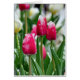 Ein vorübergehender Sturm legt Schnee auf drei rosa Tulpen. Beachten Sie, dass diese Karte mit Ihrer persönlichen Inschrift angepasst werden kann.
