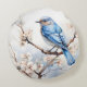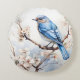 Frühlingsvogel im blühenden Baum Rundes Kissen