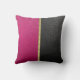 Das Lederlook in Fuchsia und das schwarze Kissen, das personalisiert sein kann.