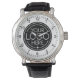 Uhr, Vintage Männeruhr mit schwarzem Lederarmband