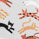 Viele lustige Kätzchen springen auf einem blassneutralen grauen Hintergrund herum. Originelle Kunst von Nic Squirrell. Frisch und unterhaltsam, ideal für Kinderzimmer- oder Kinderzimmer oder für alle Tierliebhaber!