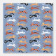 Viele lustige Katzen, die auf himmelblauem Hintergrund herumspringen. Originelle Kunst von Nic Squirrell. Frisch und unterhaltsam, ideal für Kinderzimmer- oder Kinderzimmer oder für alle Tierliebhaber!
